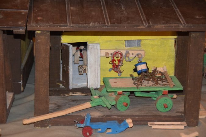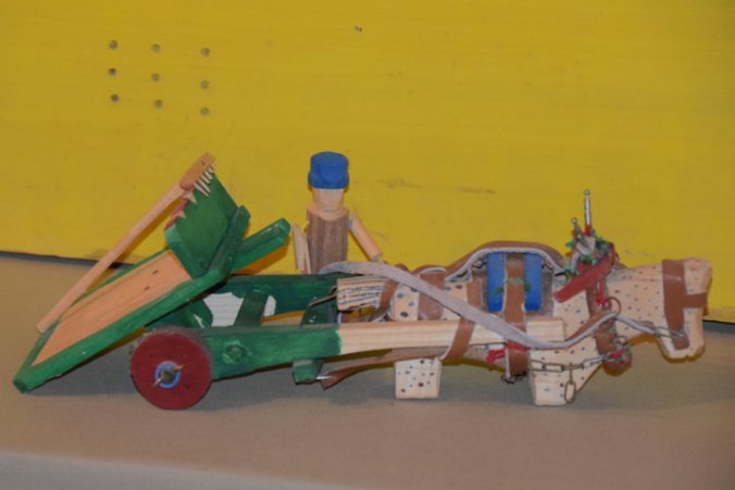 Era tanto impresso nella memoria ogni dettaglio che non ha avuto difficoltà a riprodurlo, un evidente atto di amore per la cascina perduta e per le cose amate: le “bestie”, la morosa. La ricerca della corrispondenza all’originale ha portato Piero ad utilizzare oltre al legno materiali “realistici”, cuoio, metallo. Ammirevole la ricostruzione dei finimenti, soprattutto la “collana” dei cavalli.