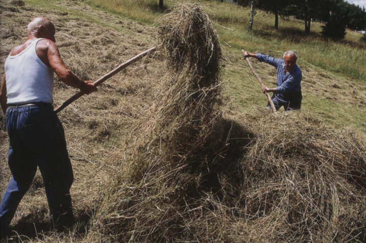 Durante il giorno il fieno deve essere rivoltato per portare in superficie lo strato più umido a contatto con il terreno. Tutte queste operazioni, eseguite a ritmo frenetico quando ci avverte l’arrivo della pioggia (che dilavando il fieno comporta perdite per lisciviazione) erano eseguite a mano, come lo sfalcio con la ranza (la falce fienaia).