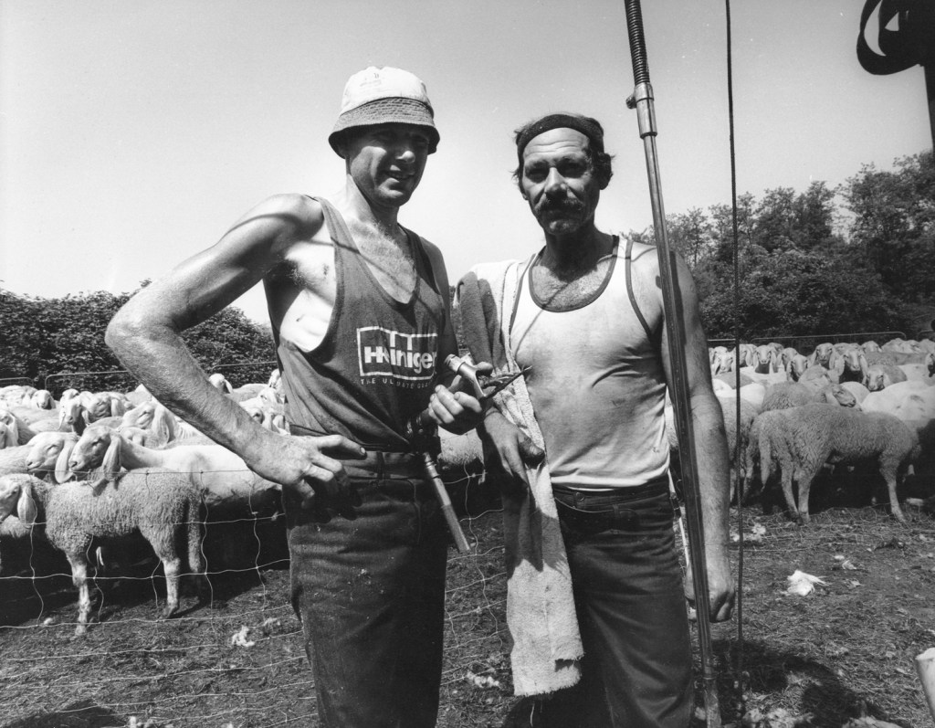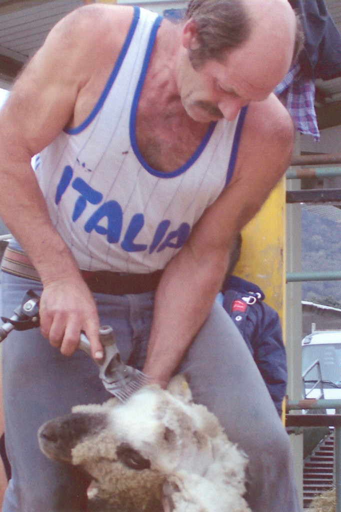 Grazie alle conoscenze acquisite all’estero (ma non ha mai preso un aereo per paura del volo), Tino riuscì a mettere insieme una squadra internazionale composta da tosatori professionisti: sardi, francesi, spagnoli, neozelandesi. Alcuni dei membri della squadra di tosatura si spostavano da un paese all’altroe da un emisfero all’altro sfruttando la differenza delle stagioni di tosa. Quando non era impegnato con la sua squadra a tosare i grandi greggi dei pastori transumanti, Tino si prestava anche a tosare dei piccoli greggi anche se il lavoro con la squadra lo teneva impegnato buona parte dell’anno, spostandosi tra le diverse regioni del Nord Italia e nelle due stagioni. L’attività di tosatura dei nostri greggi transumanti, infatti, a differenza di altre realtà pastorali, è distribuita su due campagne di tosa: quella autunnale e quella primaverile. Da tempo il pastore di pecore bergamasche (e affini) ha rinunciato a eseguire una sola tosa perché, anche se il costo dell’operazione supera largamente il valore della lana (sempre che si riesca a venderla), il saltare una tosa va troppo a detrimento del benessere della pecora e si può anche ripercuotere negativamente sulla produttività del gregge (agnelli svezzati per fattrice all’anno). Nel tempo Tino ha formato anche degli allievi “locali”, come Claudio che, lasciata la fabbrica, che non gli piaceva, è diventato pastore e, da pastore, incoraggiato da Tino, è diventato tosatore rimanendo a fianco del “maestro” per undici anni, sempre disponibile, anche al di fuori del lavoro di tosatura, a tutte quelle iniziative, spesso di puro volontariato, che Tino metteva in piedi o a cui partecipava. Grazie a una buona organizzazione, la squadra riusciva a tosare in un giorno (o due) tutti i capi di greggi anche di grandi dimensioni fornendo un servizio prezioso ai pastori a costi contenuti. Il ritmo di tosa di Tino era di 250-300 pecore al giorno, quello dei tosatori “ordinari” di 150-180. Per essere un capo in un’attività dove conta la pratica non puoi non essere anche il più bravo. Fiero della sua identità di pastore (che non ha mai “dismesso”) lo era anche di quella professionale, più “moderna” (per via delle tosatrici elettriche e della sua internazionalità) di tosatore. Lo si vedeva da come esibiva con orgoglio i cimeli delle gare di tosatura all’estero. Non considerava, però, le due attività come separate. I tosatori, del resto, nascono pastori.
