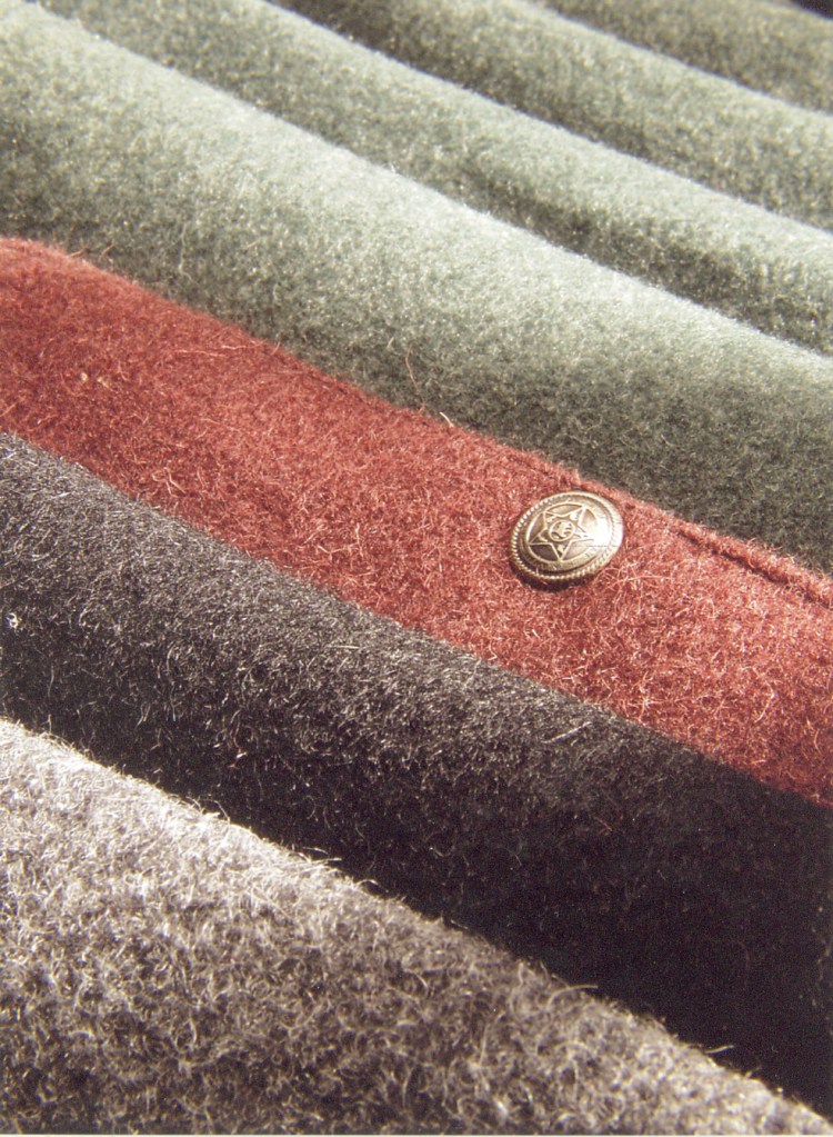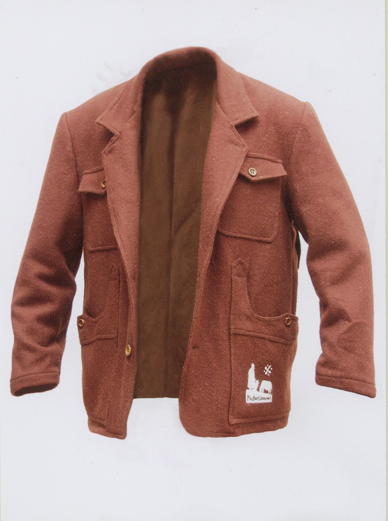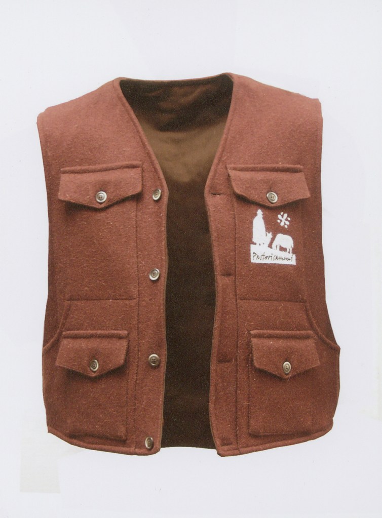 Con grande disponibilità, il lanificio Gusmini di Cene (dove, negli anni ’90 era stato prodotti l’ultimo pannolana bergamasco) aveva poi provveduto, a prezzo politico (e superando alcune difficoltà tecniche) a filare, tessere, tingere e operare il finissaggio. La sartoria Taglio Avion di Bonetti (Sovere) aveva poi provveduto a confezionare i capi. Il tessuto venne realizzato a “mezza saglia”, come da tradizione del lanificio bergamasco, e tinto in nero e in marrone; in parte fu invece lasciato naturale (ecru). Un omaggio alla tradizione dell’abbigliamento dei pastori che, sino all’Ottocento utilizzavano capi (in particolare i tabarri) marroni, bianchi e verdi (per poi uniformarsi al nero solo a fine secolo). Con alcune pezze di tessuto più pesante (800 g/mq) vennero confezionati alcuni tabarri (gabà) e altri indispensabili componenti del “corredo del pastore”: la giacca col carniere (dove riporre gli agnelli appena nati) e i calzoni. Questa produzione è stata riservata ad alcuni pastori come Mario Ziliani che praticavano il nomadismo durante l’inverno. Con le pezze di tessuto di peso più ridotto (600 g/q) sono stati invece confezionati ì gilét (crozèt), e altre giacche destinate, nelle nostre intenzioni, non solo ai pastori ma anche a chi per l’uso all’aperto. La “linea” era stata proposta con il marchio Pastori camuni regolarmente depositato presso la Camera di Commercio di Milano. Con il tessuto “naturale” furono realizzati, a titolo dimostrativo, alcuni accessori che possono essere confezionati in ambito casalingo: semplici gilét, cappelli, borse. Tino era molto orgoglioso del risultato.